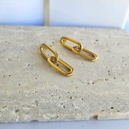 Σκουλαρίκια Κουμπωτά Leaves – Χρυσό