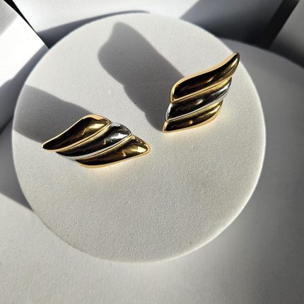 Σκουλαρίκια Κουμπωτά Wings – Δίχρωμο