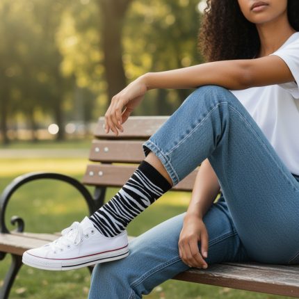 Κάλτσες Unisex Ψηλές Ζεβρέ – Ασπρόμαυρο