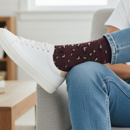 Κάλτσες Unisex Ψηλές Λεοπάρ – Μπορντό