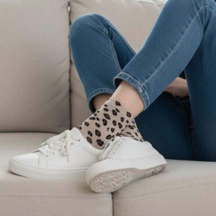Κάλτσες Unisex Ψηλές Leopard Spots – Κρεμ