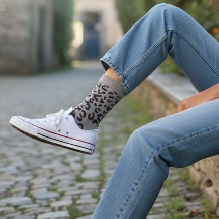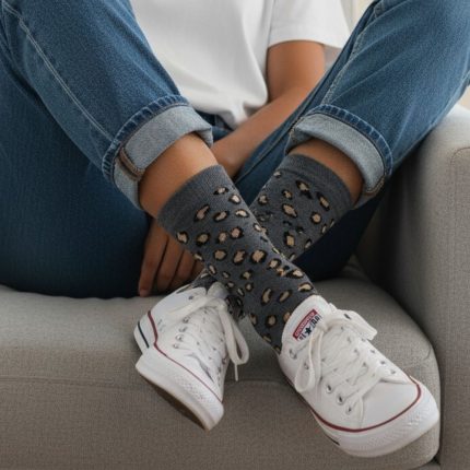 Κάλτσες Unisex Ψηλές Λεοπάρ – Γκρι