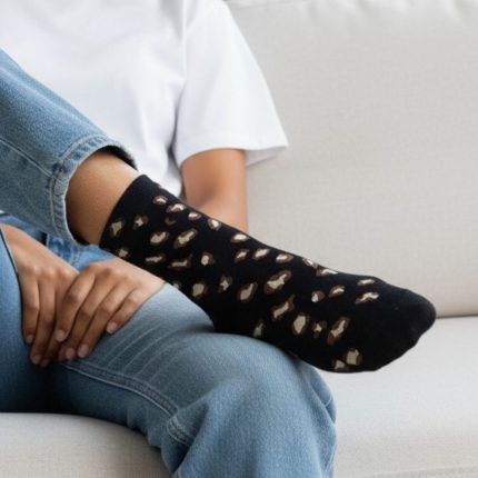 Κάλτσες Unisex Ψηλές Λεοπάρ – Μαύρο