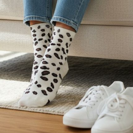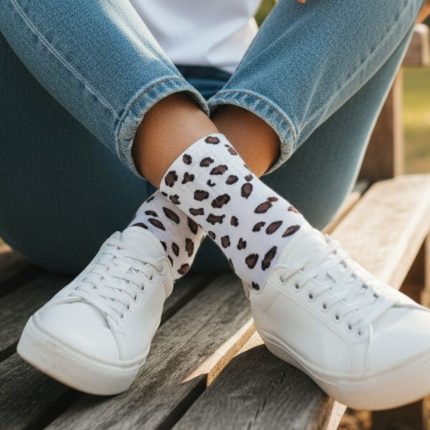 Κάλτσες Unisex Ψηλές Λεοπάρ – Λευκό