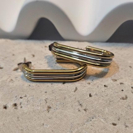 Σκουλαρίκια Square Hoops Κουμπωτά – Δίχρωμα