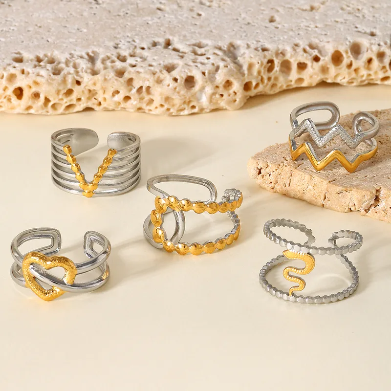 Δαχτυλίδι Ρυθμιζόμενο Angular Dots – Δίχρωμο