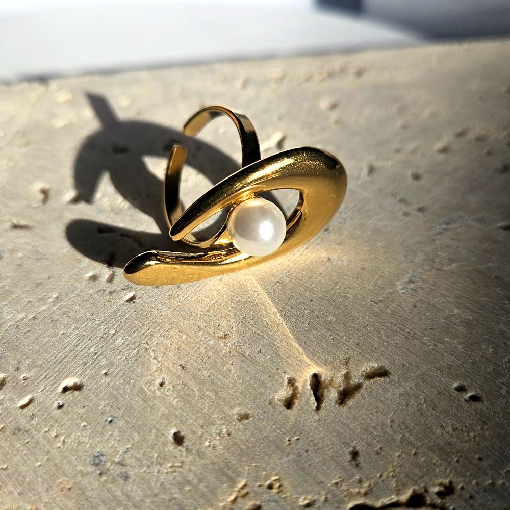Δαχτυλίδι Ρυθμιζόμενο Drop με Λευκή Πέρλα – Χρυσό
