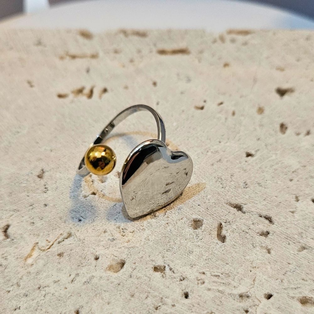 Δαχτυλίδι Ρυθμιζόμενο Heart and Ball – Δίχρωμο