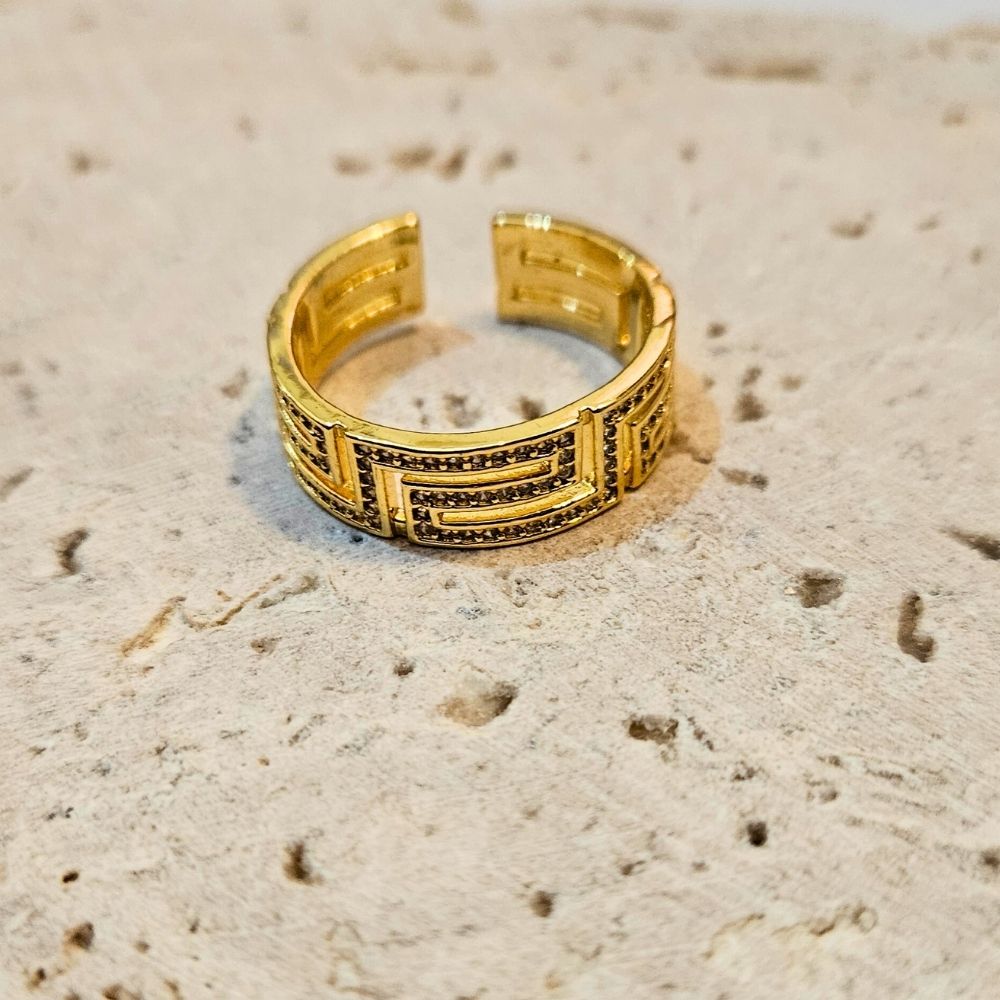 Δαχτυλίδι Ρυθμιζόμενο Meander με Στρας – Χρυσό