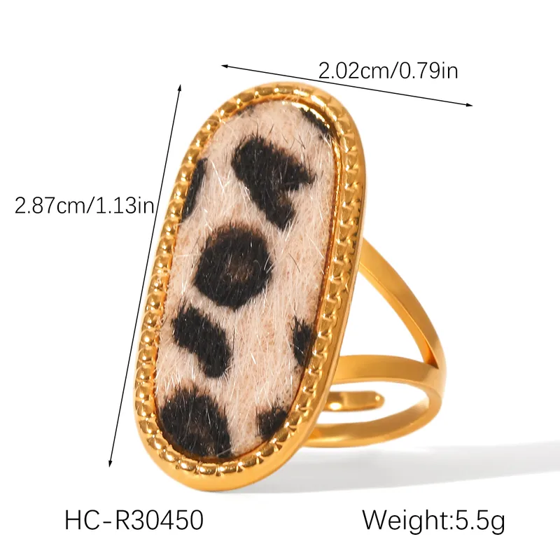 Δαχτυλίδι Ρυθμιζόμενο Οβάλ Χνουδωτό Λεοπάρ – Χρυσό