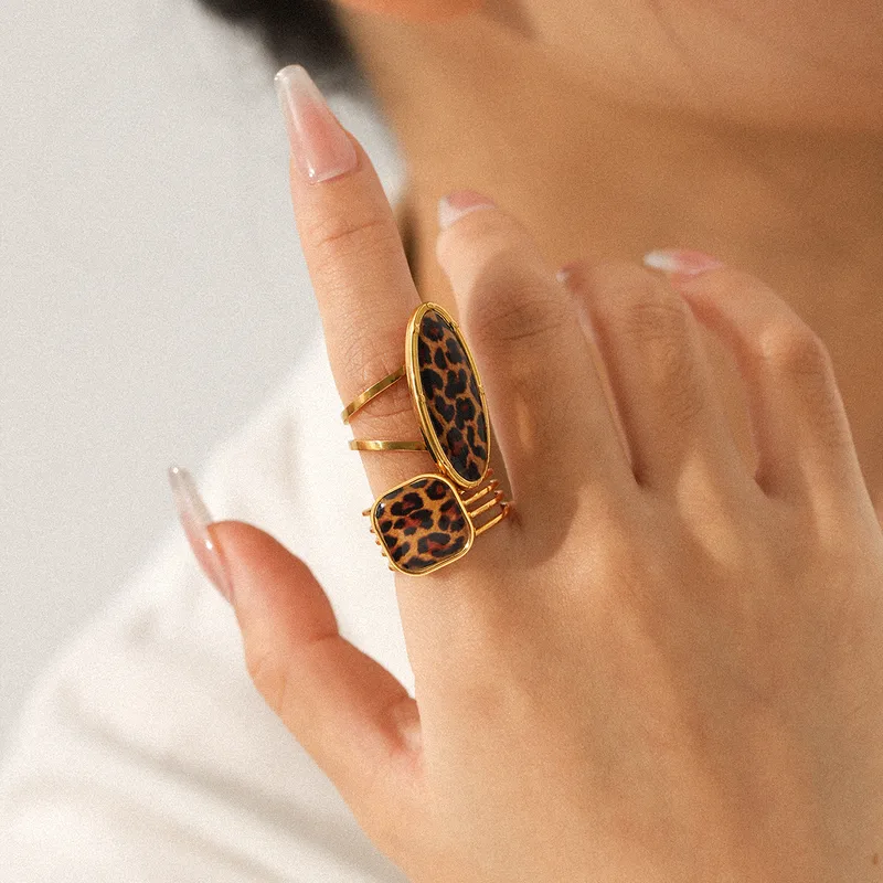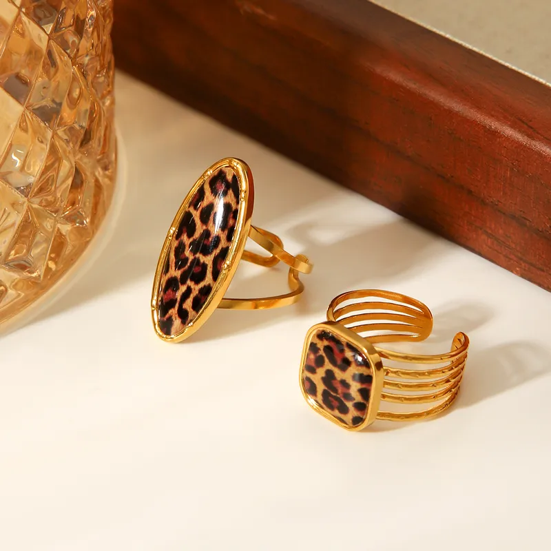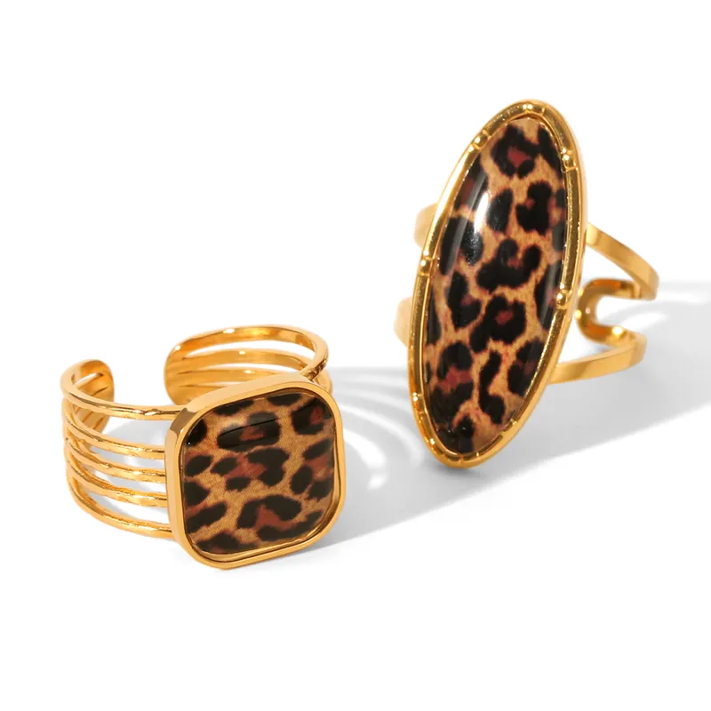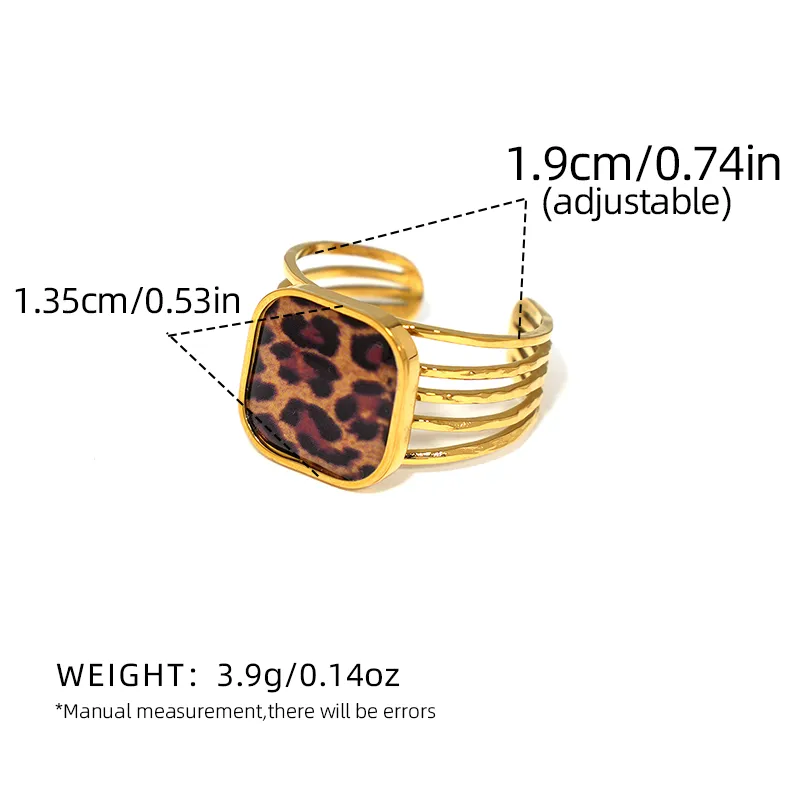 Δαχτυλίδι Ρυθμιζόμενο Square με Λεοπάρ Πέτρα – Χρυσό