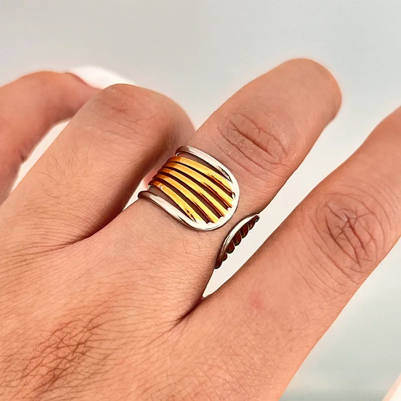 Δαχτυλίδι Ρυθμιζόμενο Stripes – Δίχρωμο