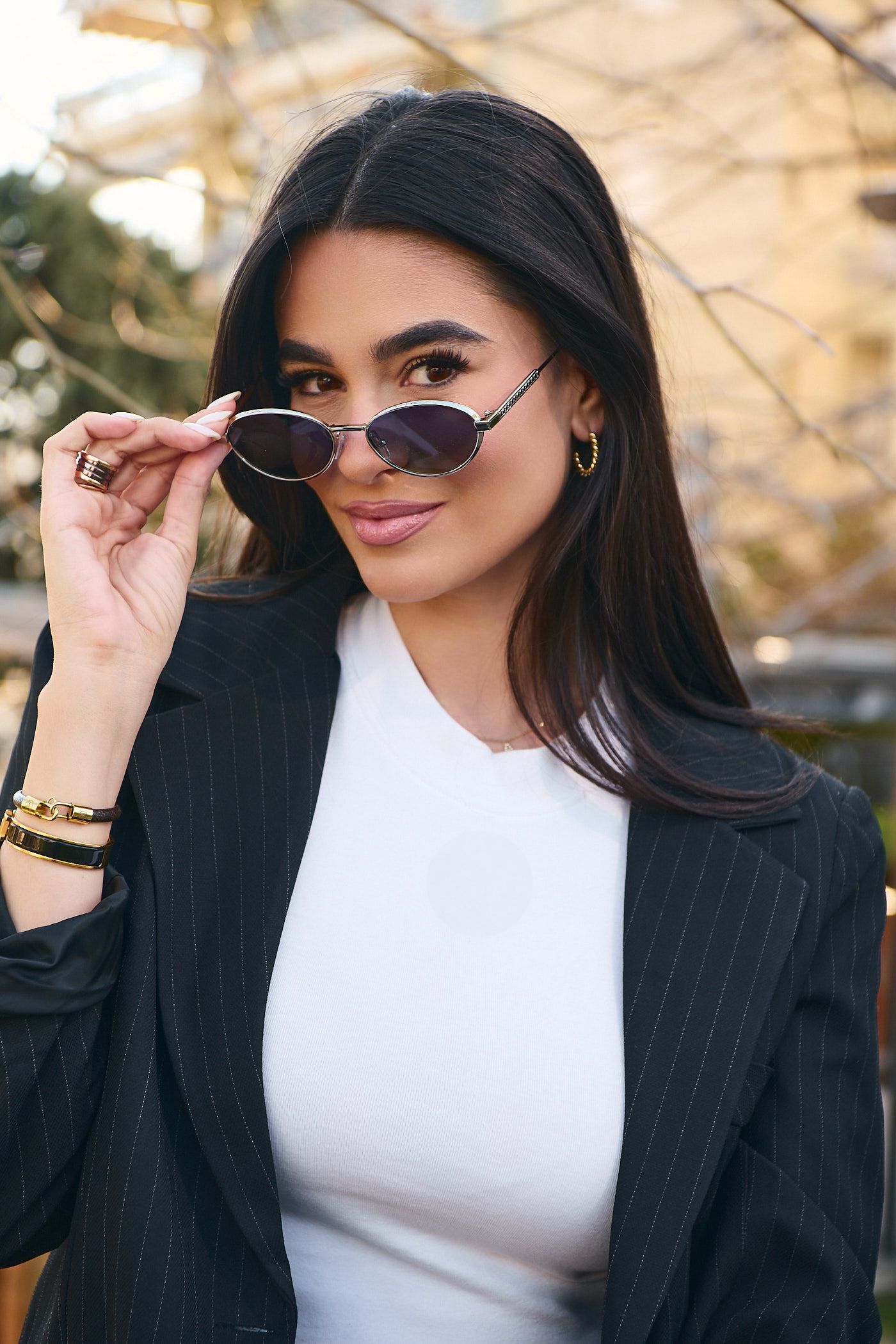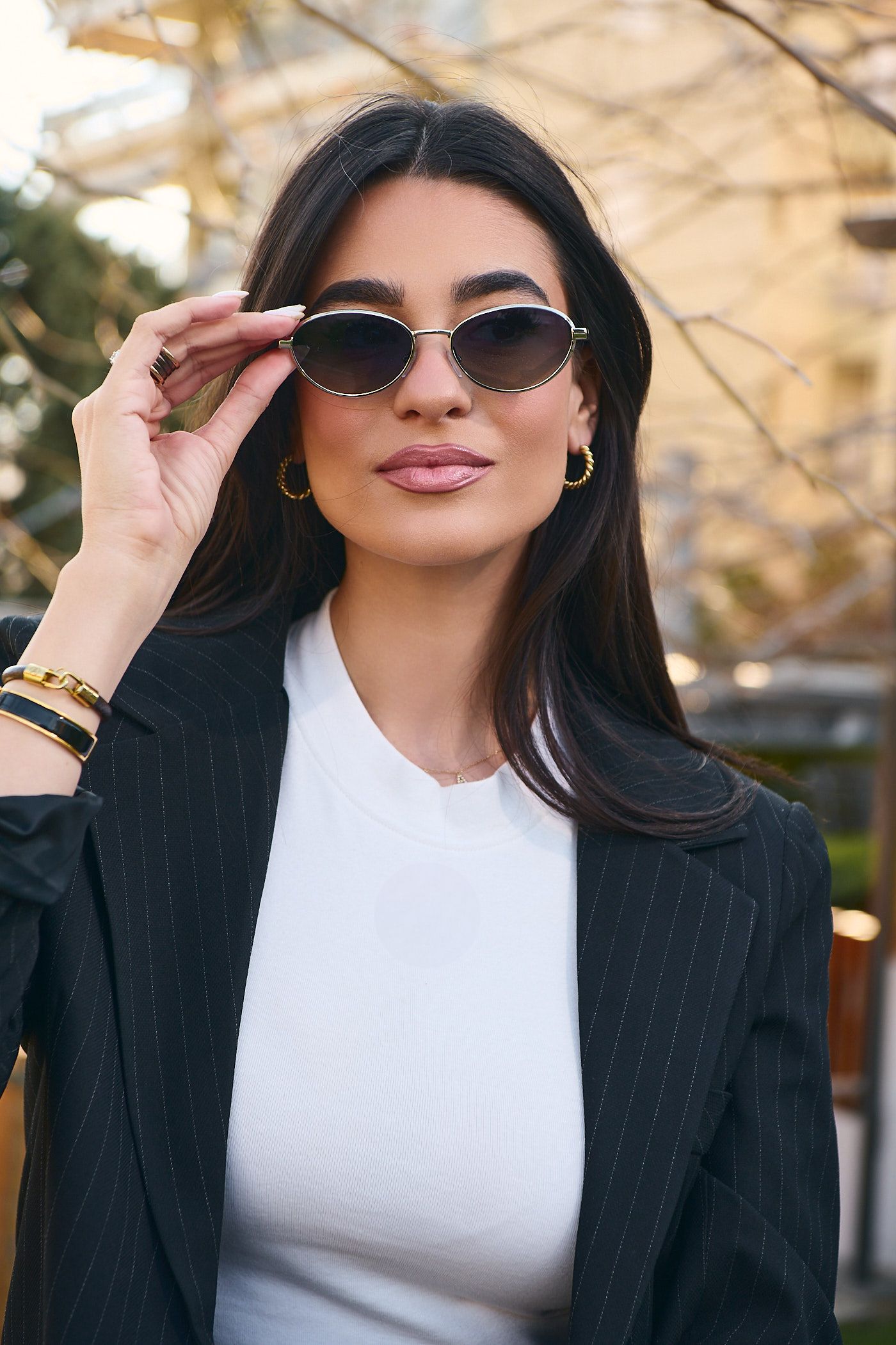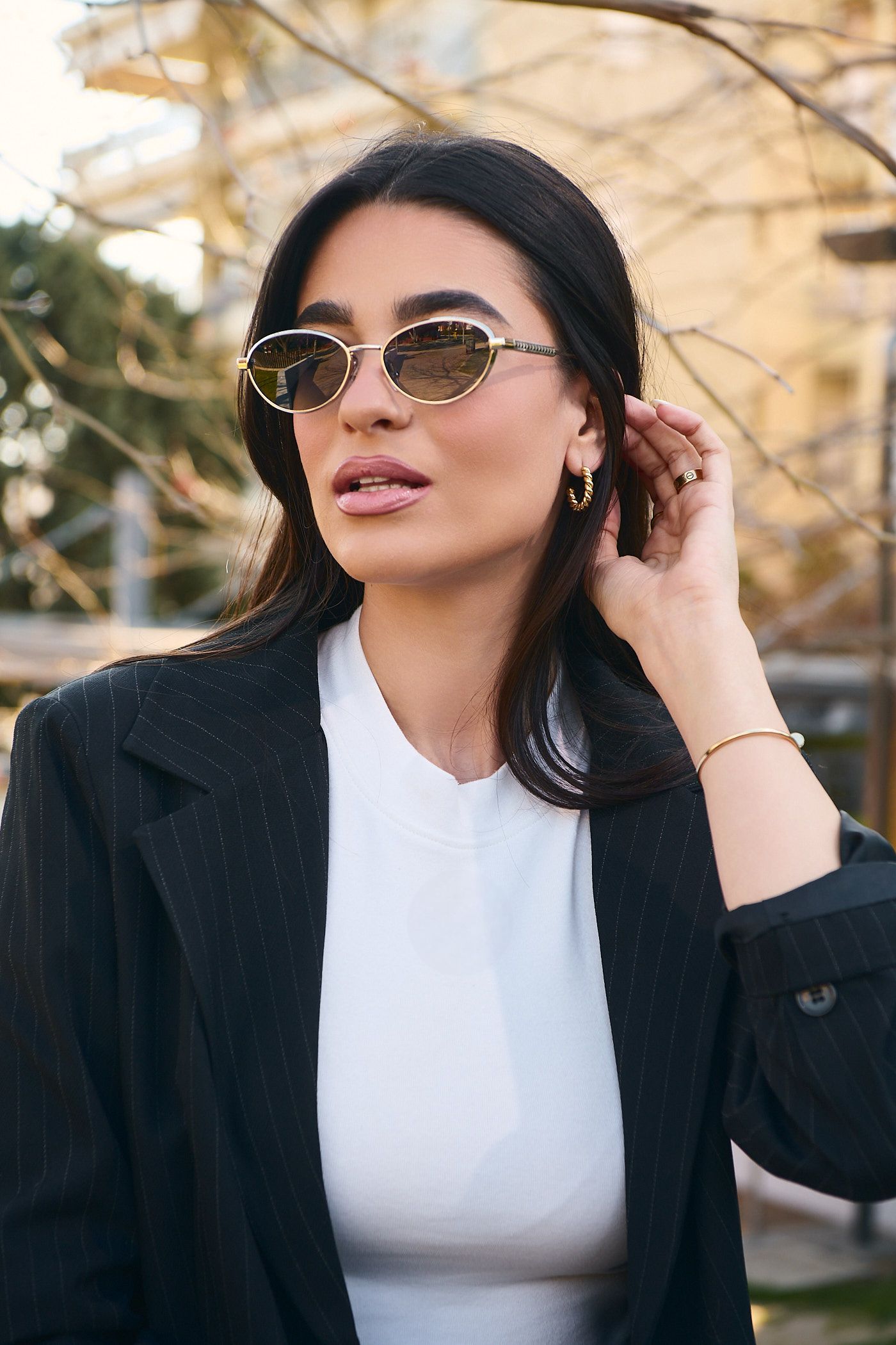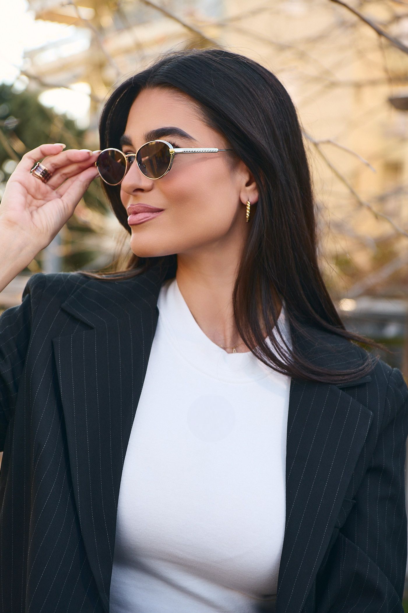 Γυαλιά ηλίου υψηλής ποιότητας με Χρυσό Μεταλλικό σκελετό με μοντέρνο design, φακό και UV400 προστασία.