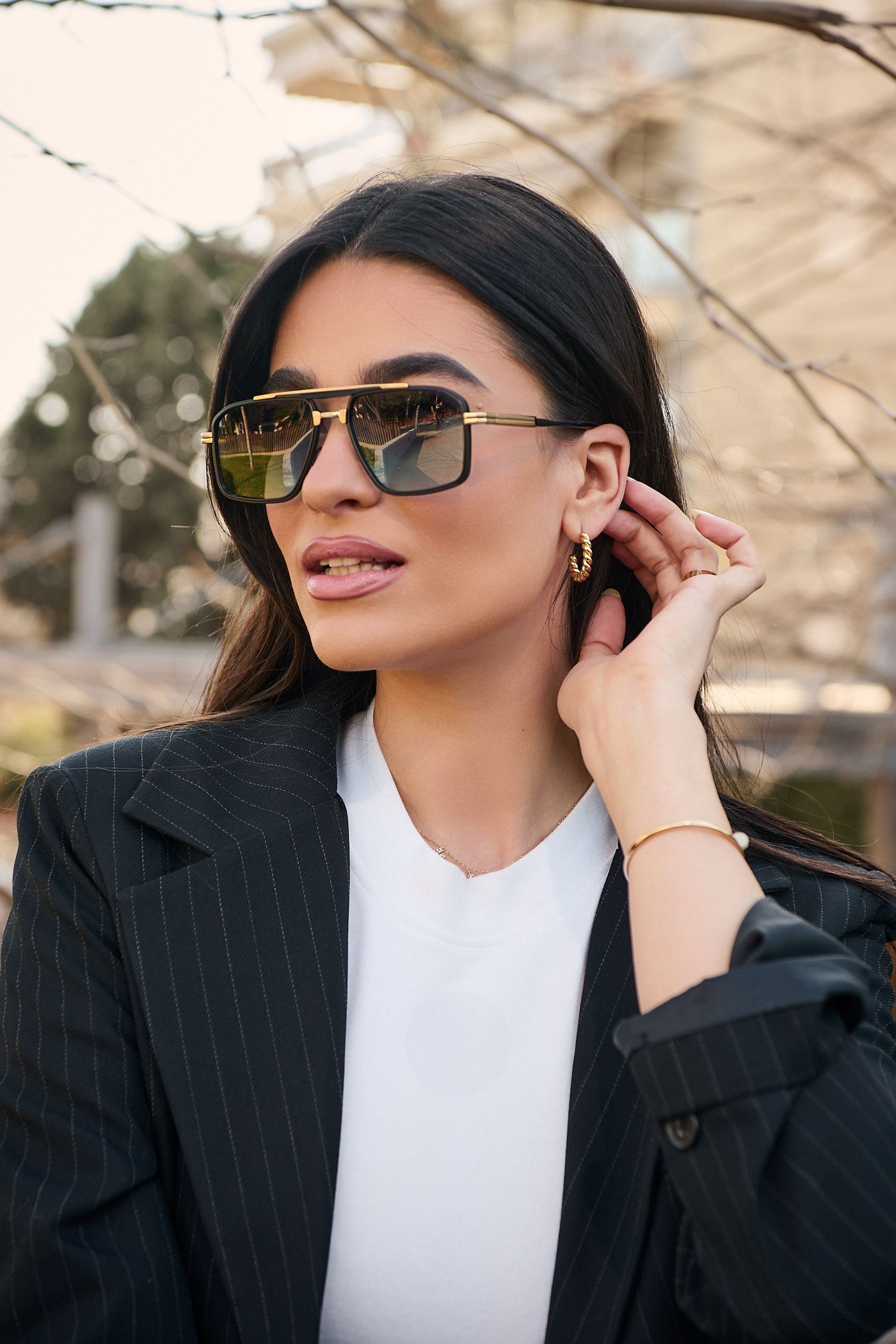 Αναβάθμισε το καθημερινό σου look με γυαλιά ηλίου που συνδυάζουν κομψότητα και διακριτική πολυτέλεια. Ο μεταλλικός χρυσός σκελετός δίνει μια refined πινελιά, ενώ οι καφέ φακοί προσφέρουν ζεστό τόνο και άνετη όραση.