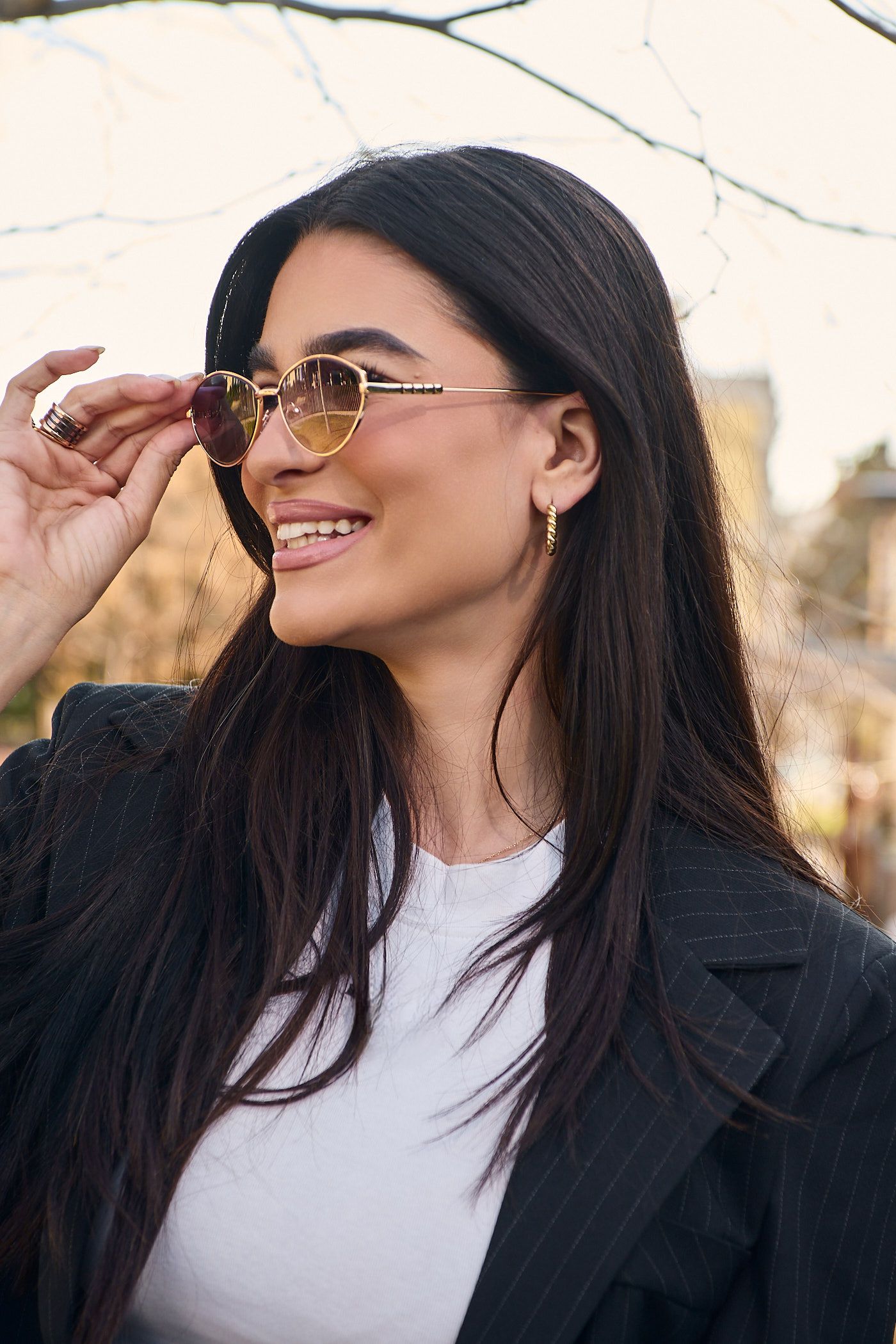 Αναβάθμισε το καθημερινό σου look με γυαλιά ηλίου που συνδυάζουν κομψότητα και διακριτική πολυτέλεια. Ο μεταλλικός χρυσός σκελετός δίνει μια refined πινελιά, ενώ οι καφέ φακοί προσφέρουν ζεστό τόνο και άνετη όραση.