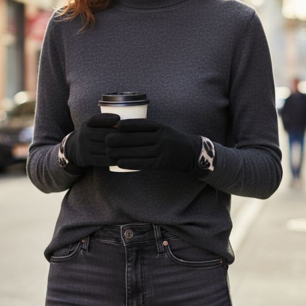 Γυναικεία Γάντια Σουέντ με Λεοπάρ Λεπτομέρεια – Μαύρο