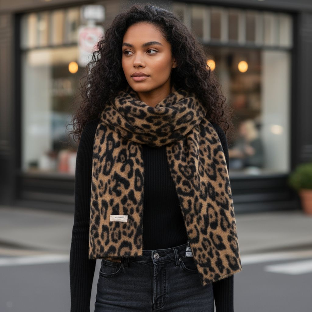 Γυναικεία Πασμίνα Μακριά Leopard Maya – Καφέ