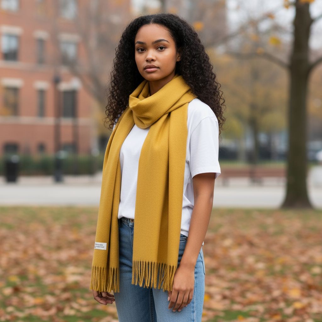 Γυναικεία Πασμίνα Μακριά με Κρόσσια – Μουσταρδί
