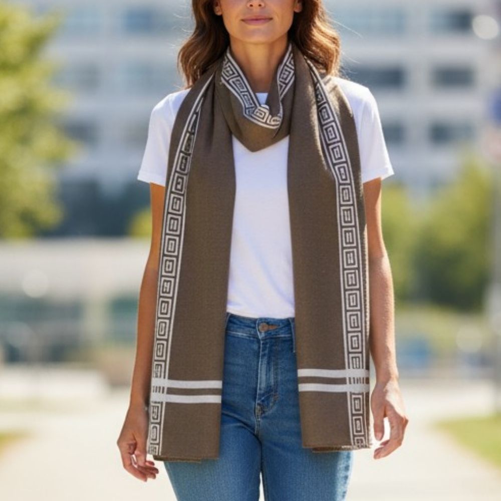 Γυναικεία Πασμίνα με Σχέδιο Μαίανδρος – Μπεζ