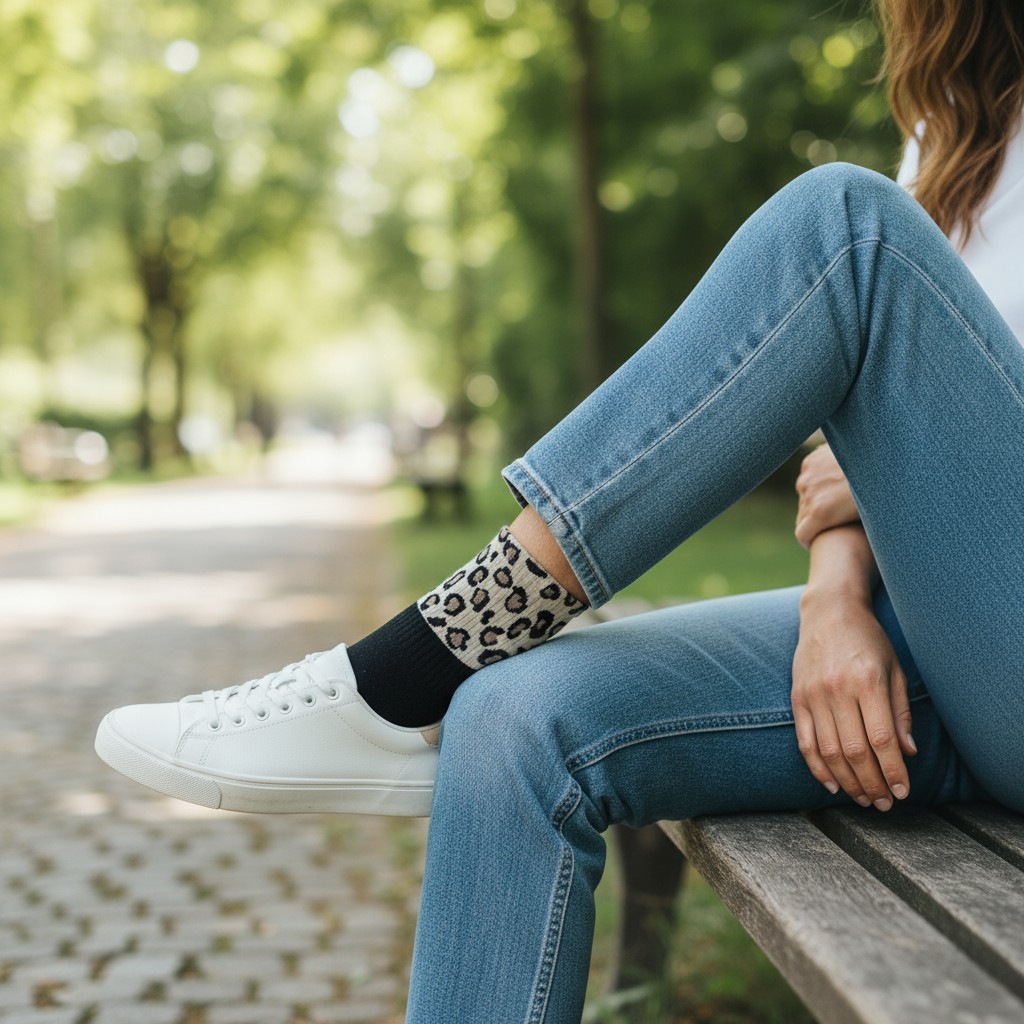 Κάλτσες Unisex Ψηλές Half Leopard -Μαύρο