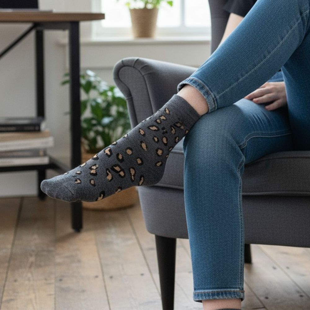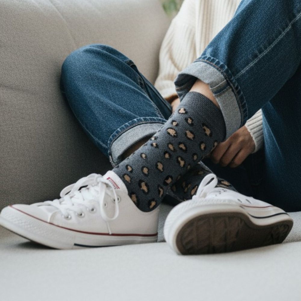 Κάλτσες Unisex Ψηλές Λεοπάρ – Γκρι