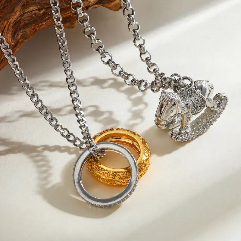Κολιέ Αλυσίδα με Διπλή Βέρα – Δίχρωμο