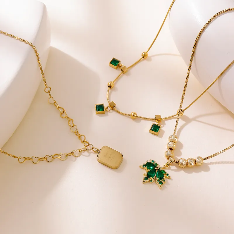 Κολιέ Αλυσίδα με Πράσινες Πετράδια Emerald – Χρυσό