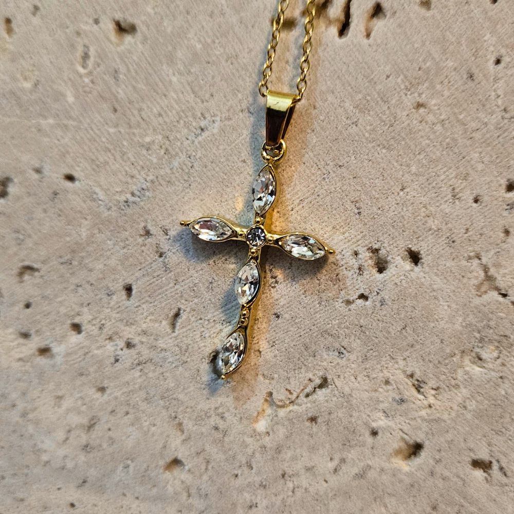 Κολιέ Σταυρός Miriam με Στρας - Χρυσό