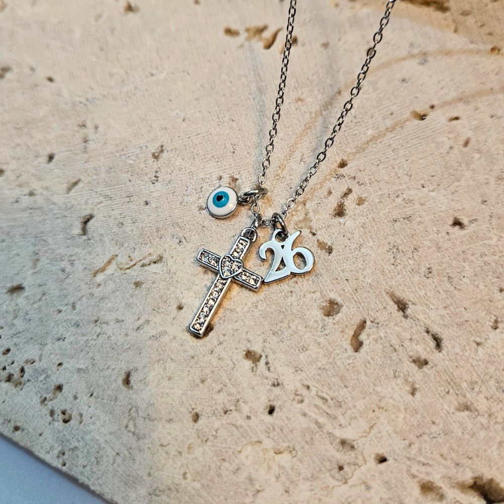 Κολιέ Γούρι 2026 Σταυρός και Ματάκι – Ασημί