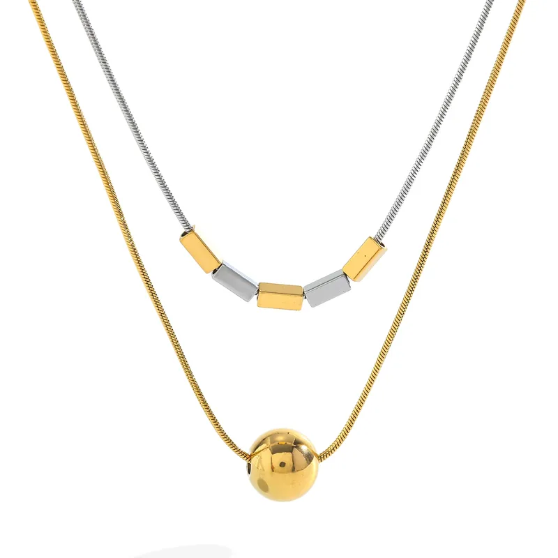Κολιέ Διπλή Αλυσίδα Bar and Sphere – Δίχρωμο