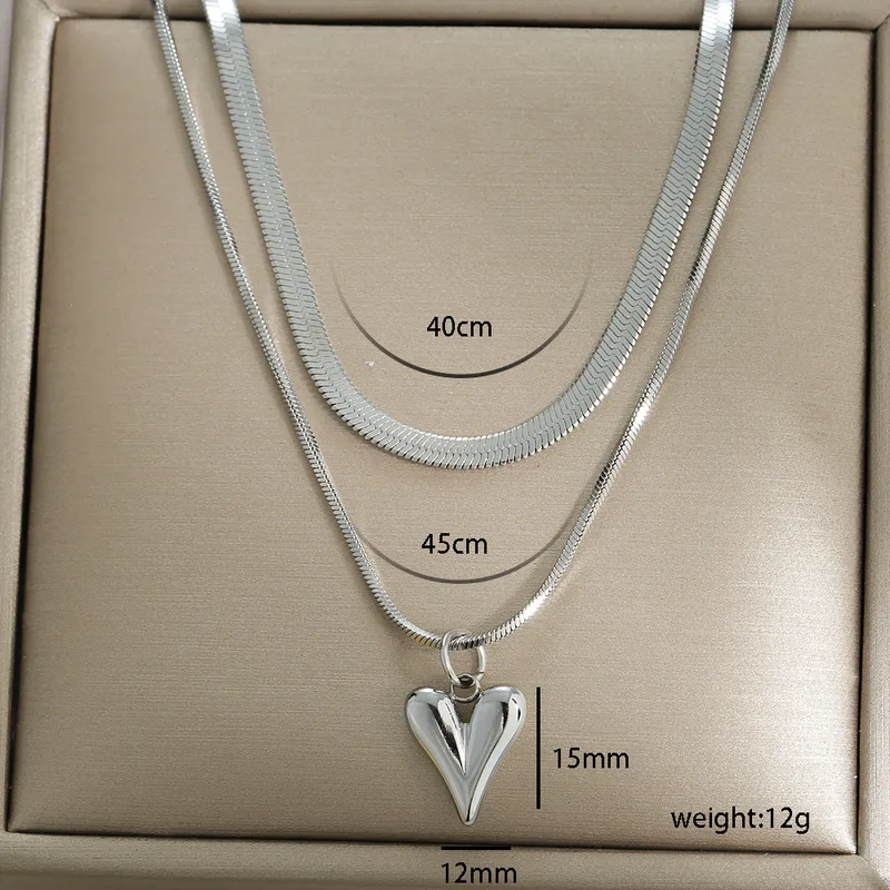 Κολιέ Διπλή Αλυσίδα Sleek and Heart – Ασημί