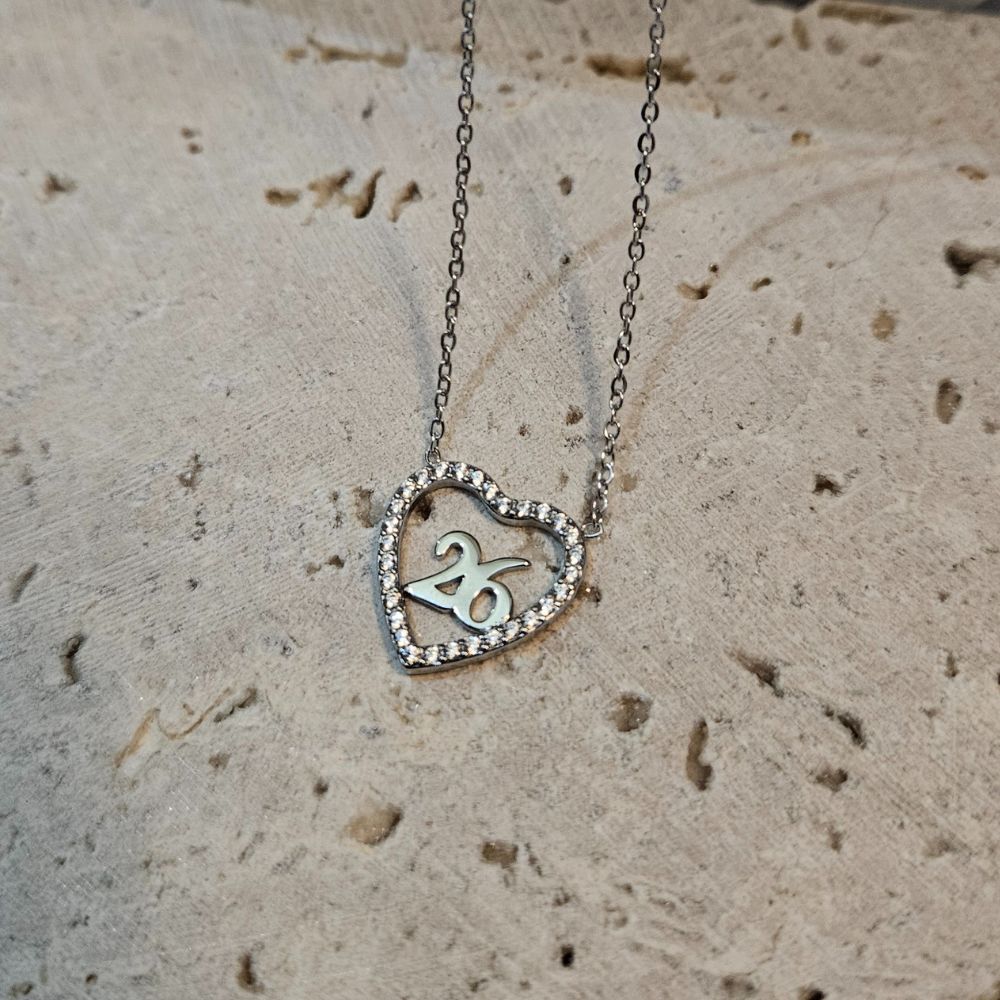 Κολιέ Γούρι 2026 Καρδιά με Στρας – Ασημί