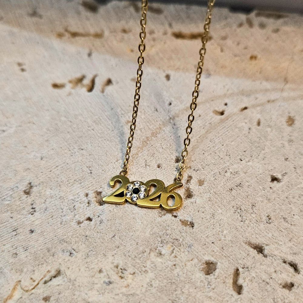 Κολιέ Γούρι 2026 με Στρας – Χρυσό