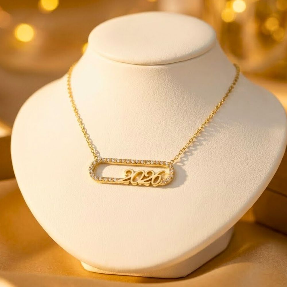 Κολιέ Γούρι Oval 2026 με Στρας – Χρύσο