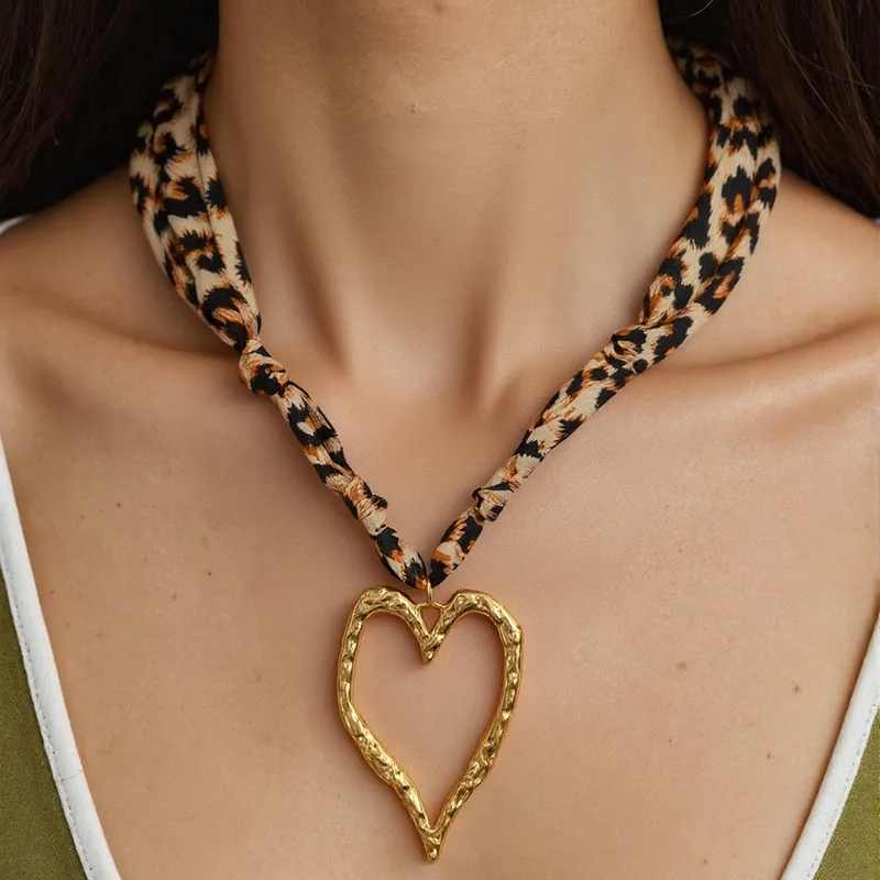 Κολιέ Λεοπάρ Bandana με Μεγάλη Καρδιά – Χρυσό