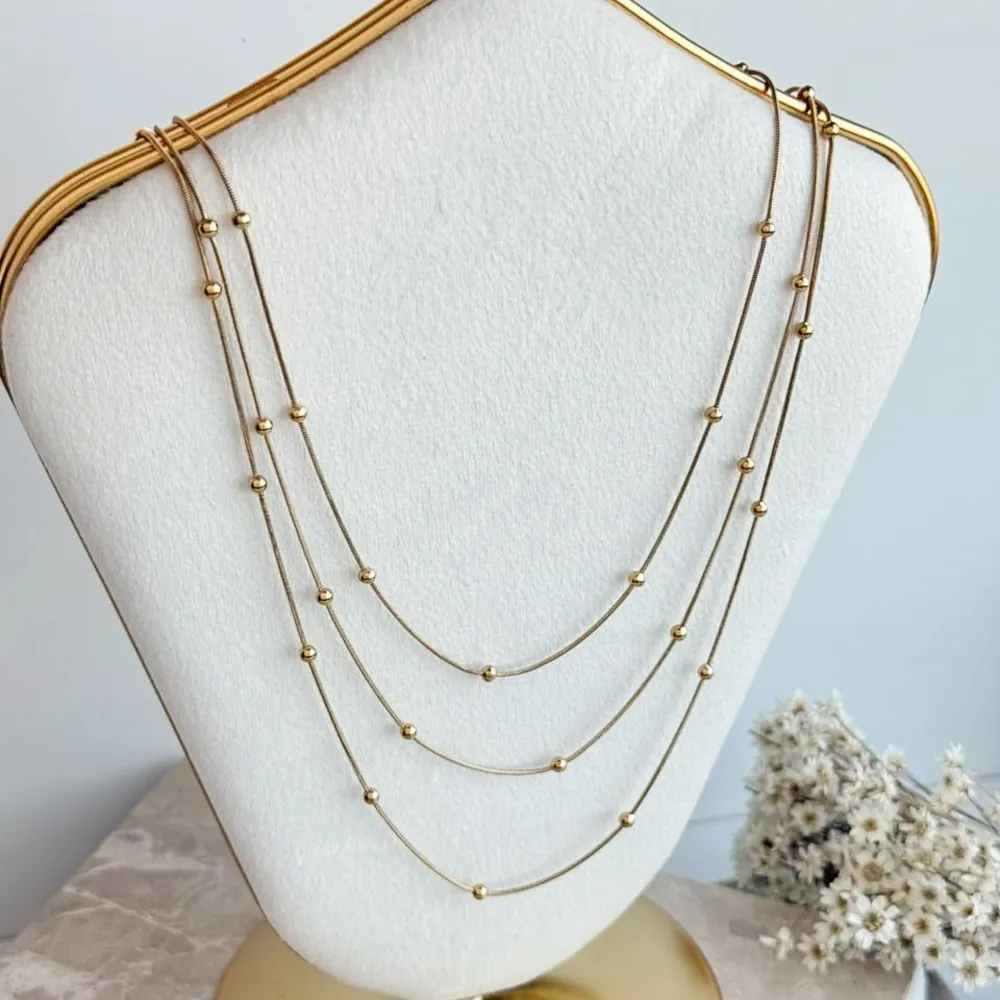 Κολιέ με Μπίλιες Τριπλό - Χρυσό