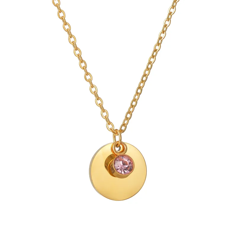 Κολιέ με Charm Disc και Ροζ Zircon – Χρυσό