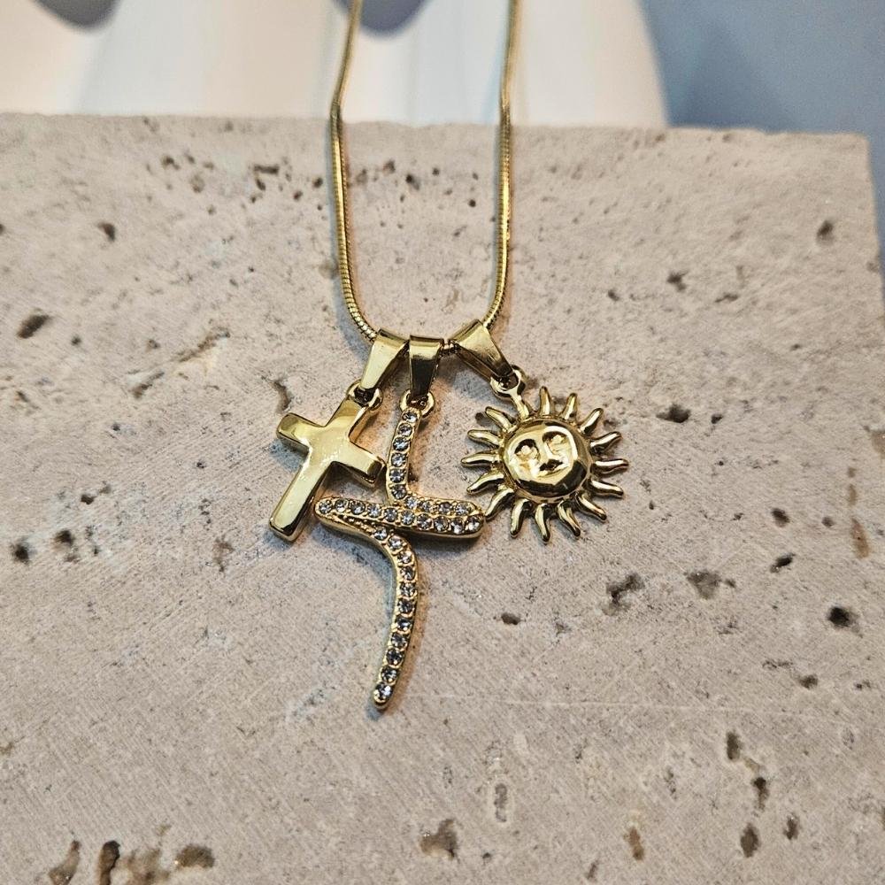 Κολιέ με Charms Σταυρούς και Ήλιο – Χρυσό