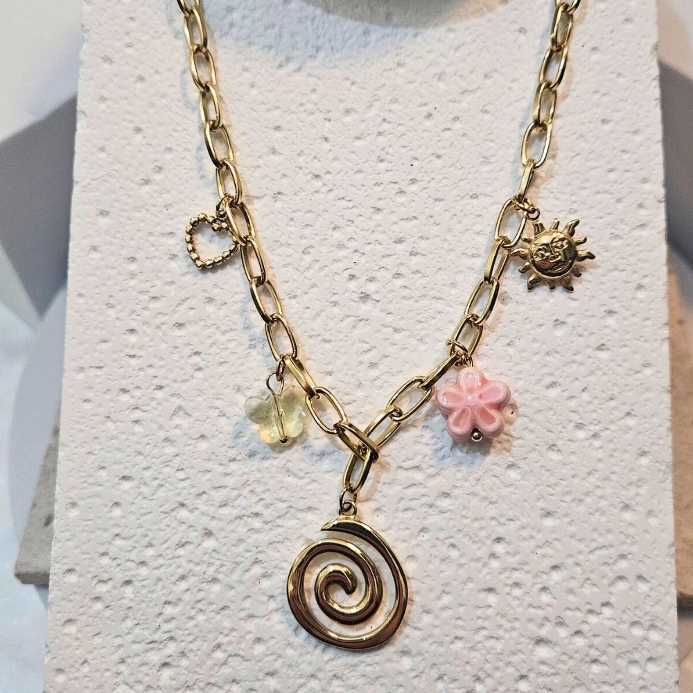 Κολιέ με Charms Sweet Spiral – Χρυσό