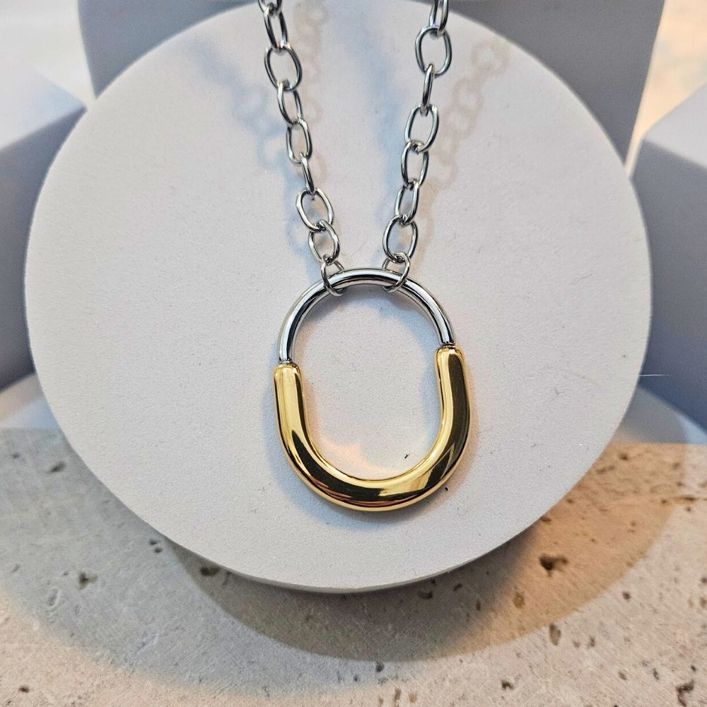 Κολιέ με Δίχρωμο Κρίκο – Ασημί