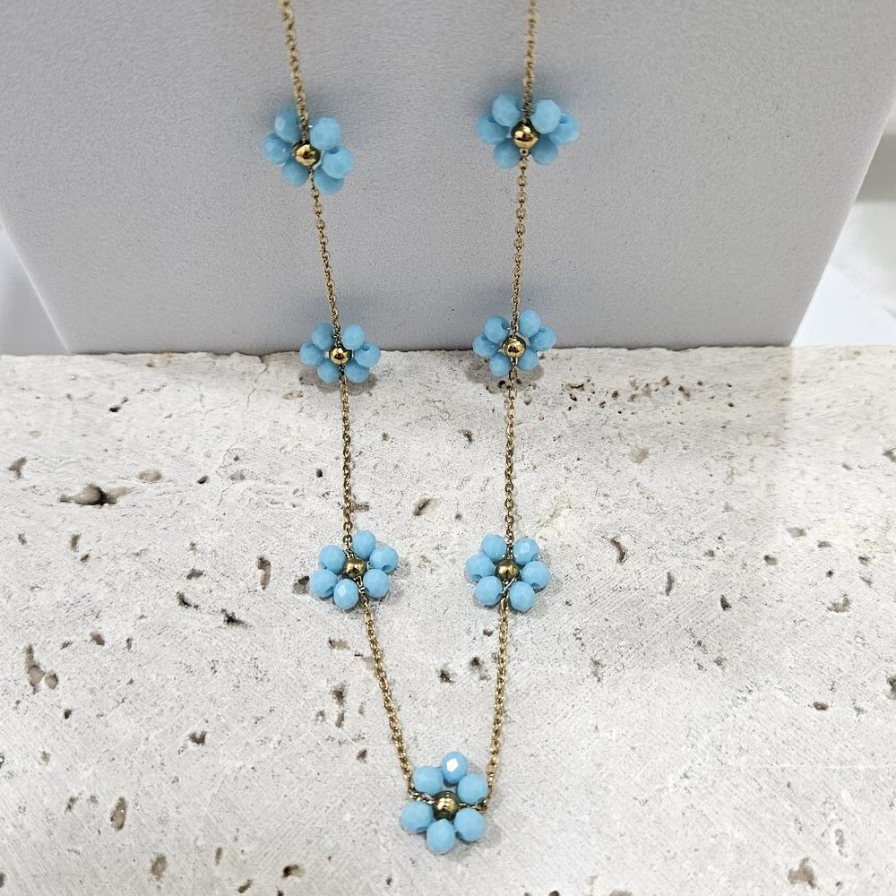 Κολιέ με Γαλάζιες Μαργαρίτες από Περλίτσες – Χρυσό