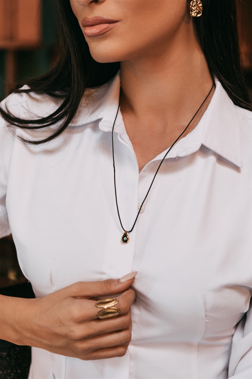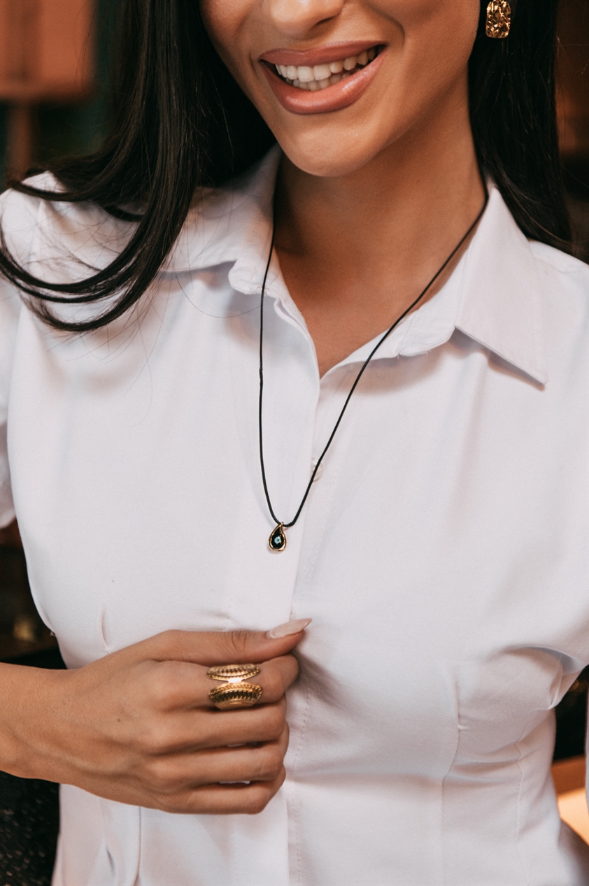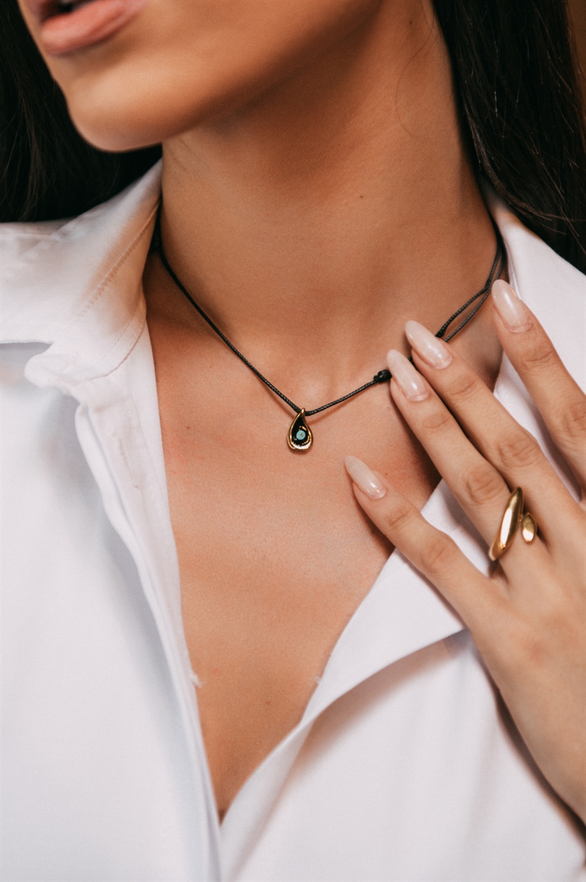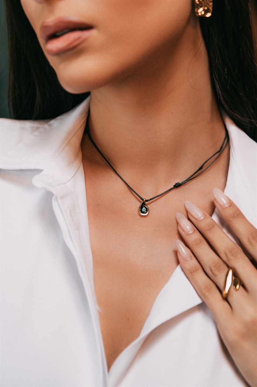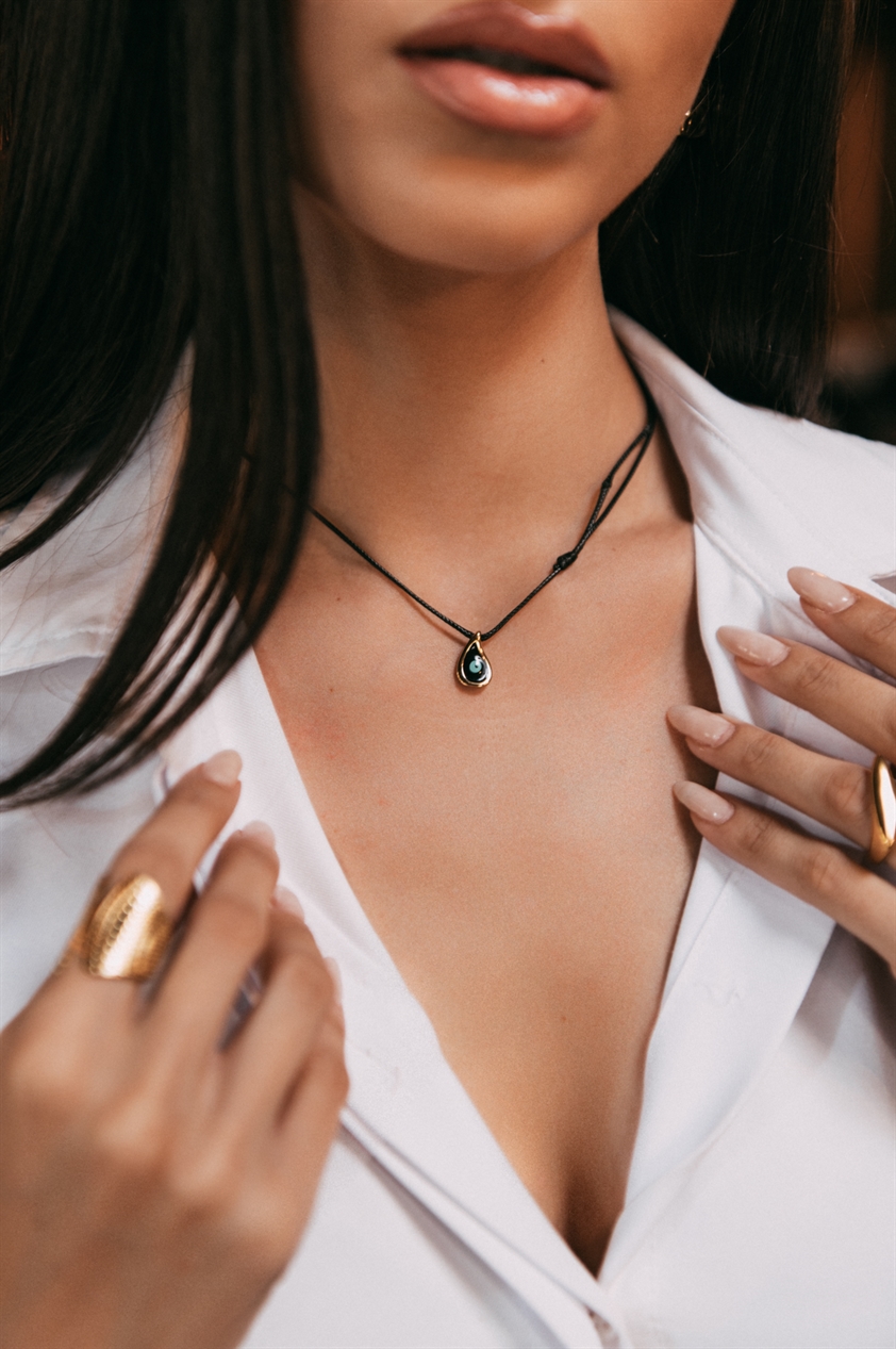 Κολιέ Με Ματάκι Χρυσό-Μαύρο