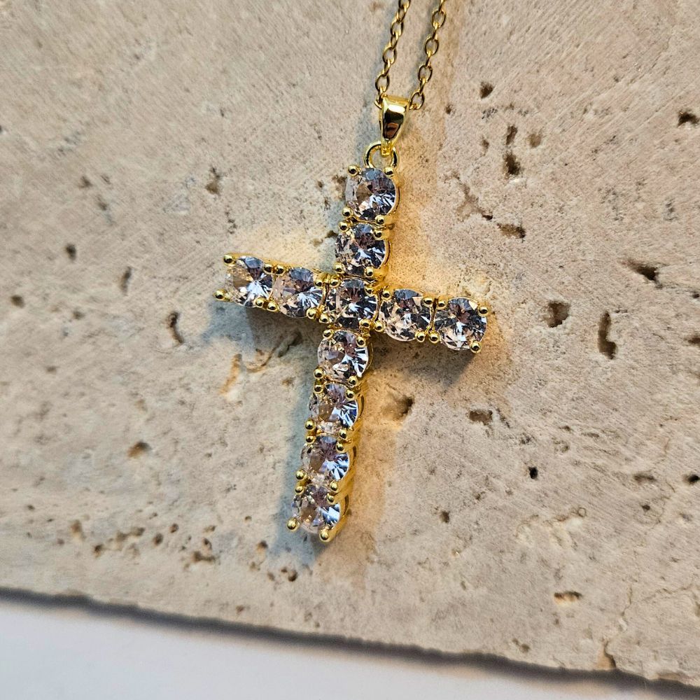 Κολιέ Μεγάλος Σταυρός με Ζιργκόν – Χρυσό