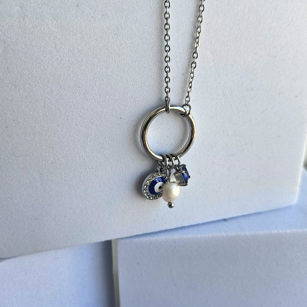 Κολιέ Pearl, Circle, Eye- Ασημί