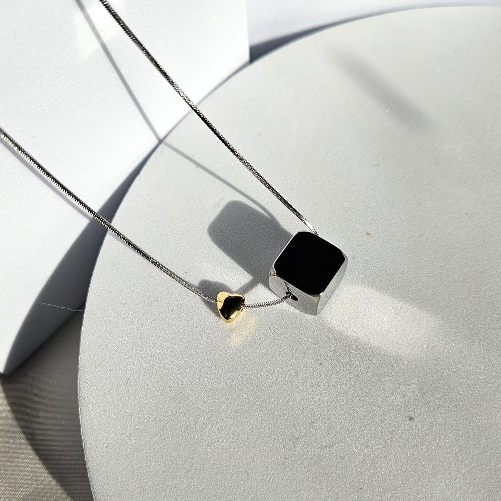 Κολιέ Qube Heart – Ασημί με Χρυσή Καρδιά