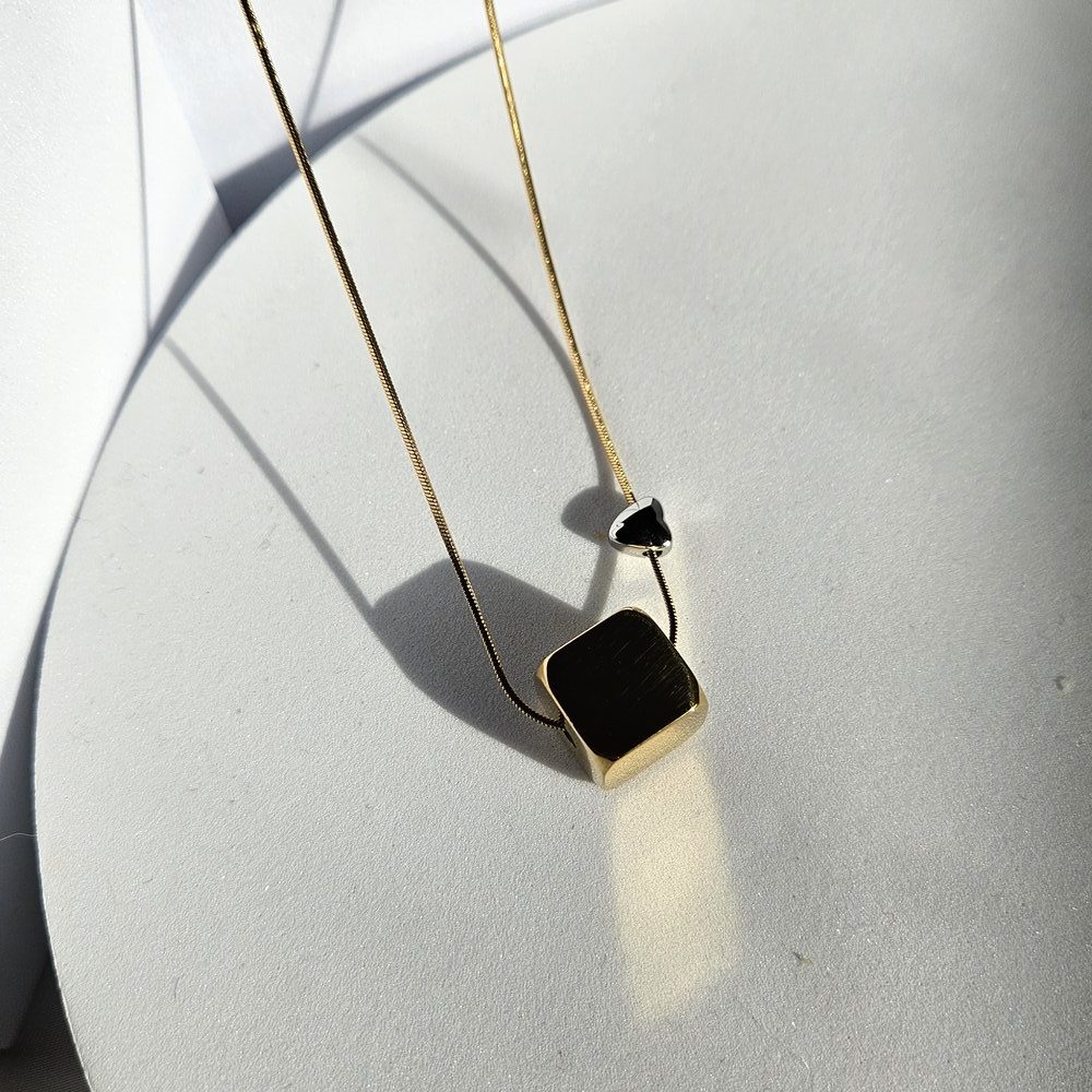 Κολιέ Qube Heart – Χρυσό με Ασημί Καρδιά