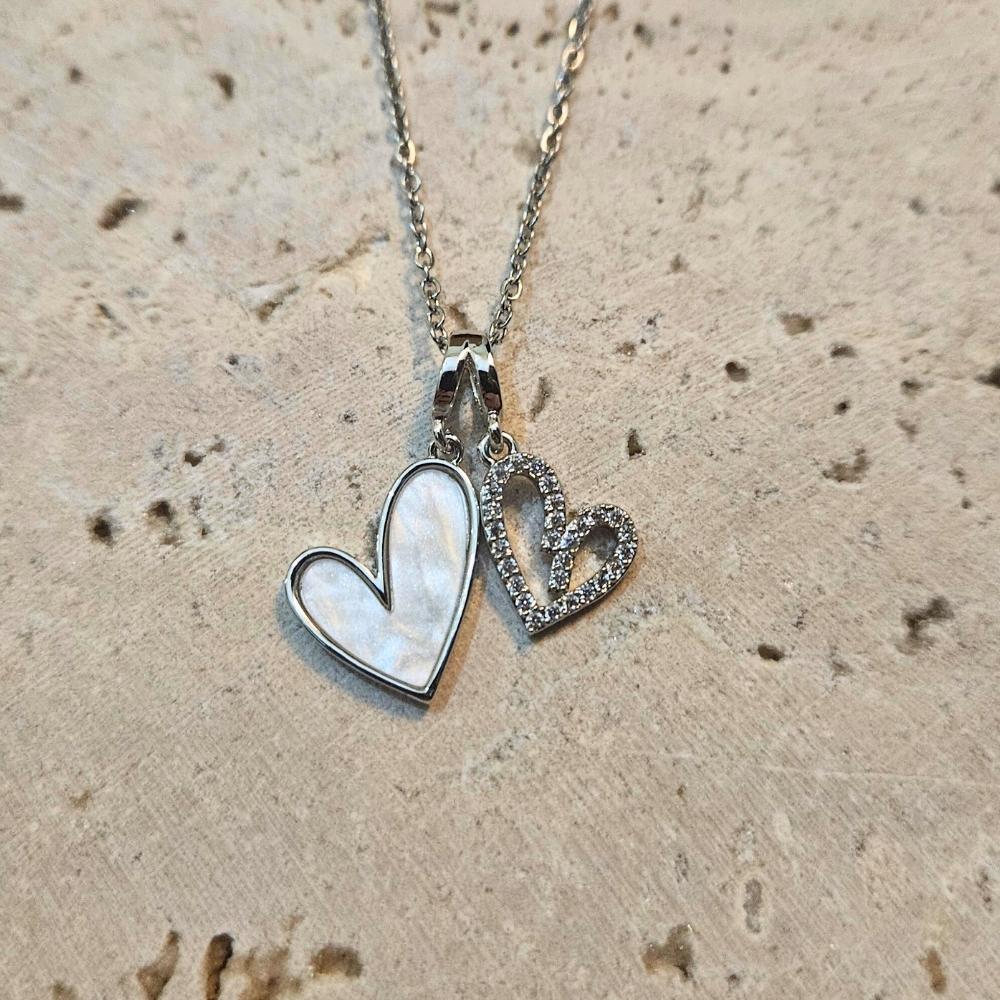 Κολιέ Σταυρός Double Hearts – Ασημί