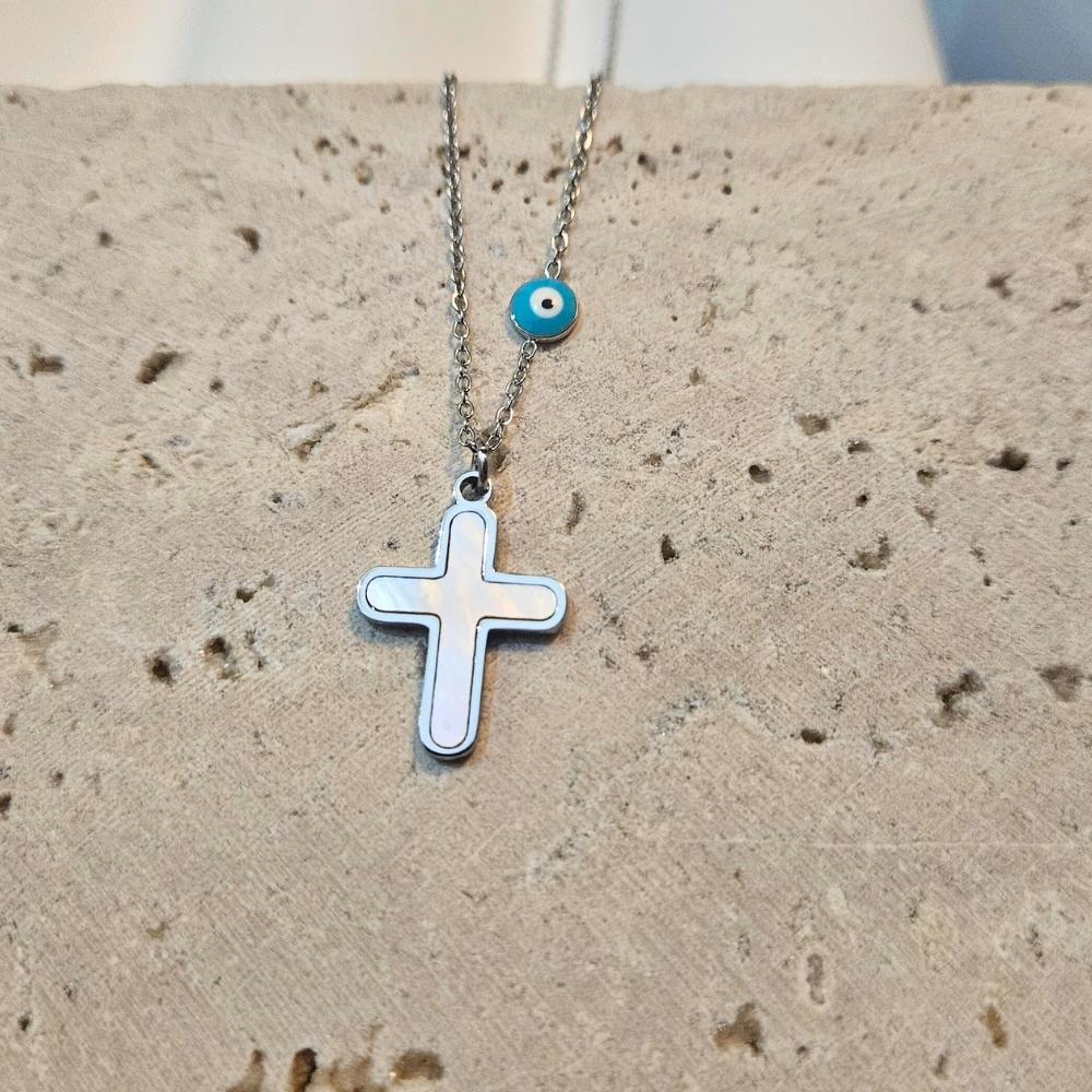 Κολιέ Σταυρός με Ματάκι – Ασημί