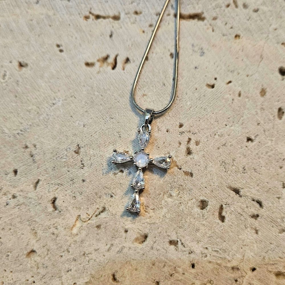 Κολιέ Σταυρός με Πέτρες Marquise – Ασημί