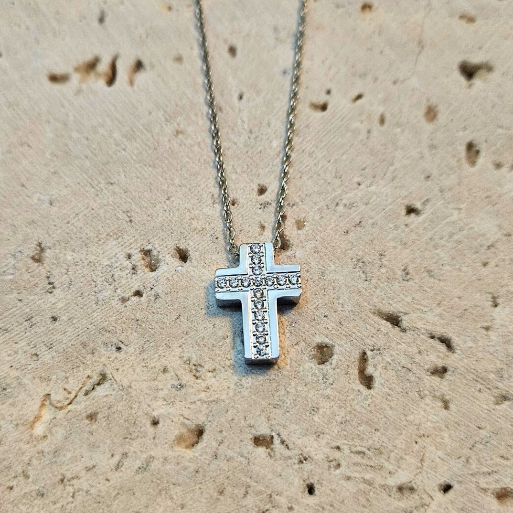 Κολιέ Σταυρός με Στρας και Λεπτή Αλυσίδα – Ασημί